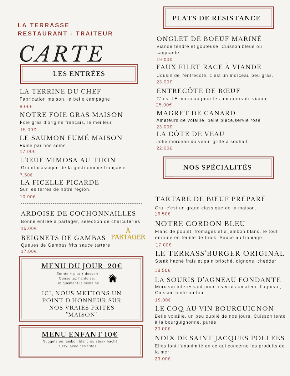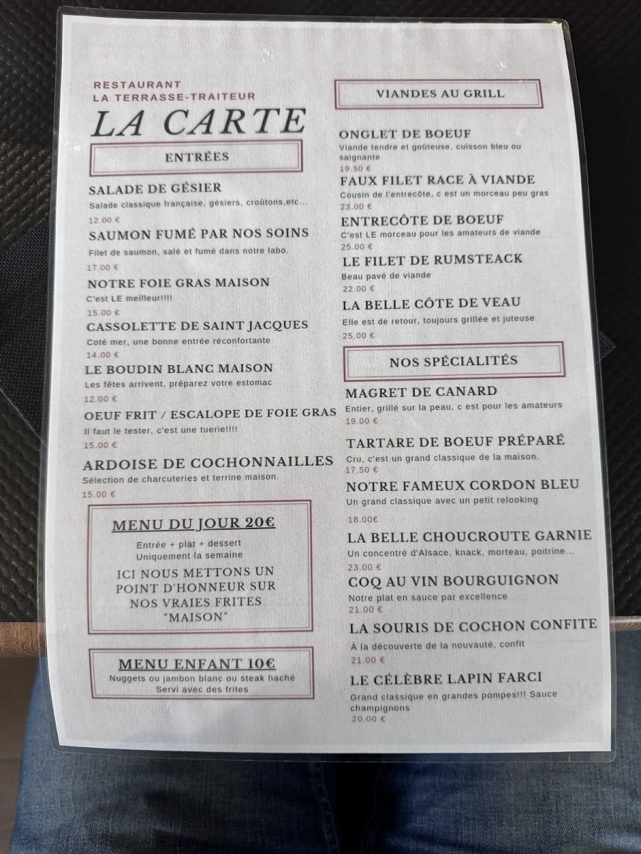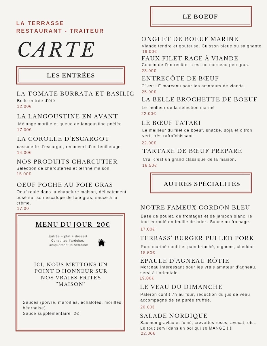 Welcome to La Terrasse, a hidden gem nestled at the Aerodrome de Saint-Quentin in Roupy, France. This charming restaurant captivates guests with its warm hospitality and high-quality cuisine, as reflected in the accolades from delighted patrons. The menu emphasizes meat dishes, featuring flavorful cuts like the onglet, which has garnered rave reviews for its taste and generosity. Guests have praised the homemade desserts, further elevating the dining experience.